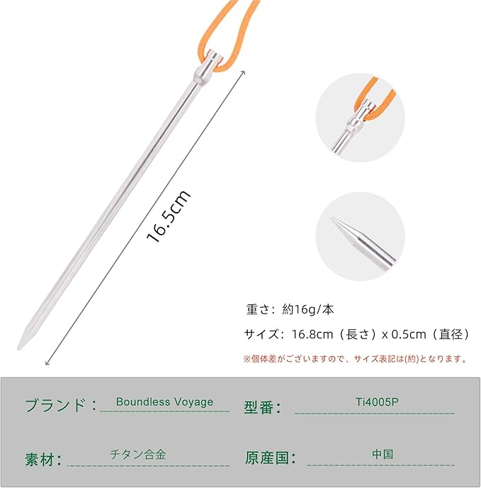 高強度のチタン合金ペグは耐腐食性、耐久性に優れています。柔らかい土、硬い土に関わらず、スムーズに釘を挿し込むことが可能です。