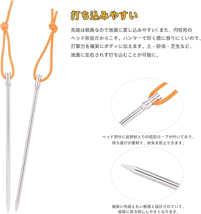 テント固定がしっかりして、軽くて持ち運びが便利なテント専用のペグ キャンプ設営用具。
