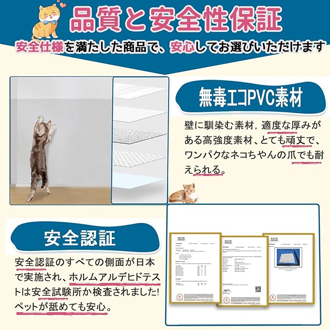 ✅【コスパ良好&安心】業界最高峰のコスパ。完全な機械設備と成熟した安定した生産技術により、 品質向上、製品保証。工場の出荷、コストが削減されます。 最も費用対効果の高い、最も実用的で幅広い用途猫 壁紙保護 シートを作成します。猫 爪研ぎ防止シートは公的機関での安全試験による、ホルムアルデヒド検査実施済みです。無毒エコ素材なのでペットが舐めても安心できます。