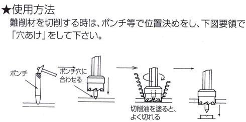 仕様:6.35シャンク対応、用途:電気工事・鉄工業・自動車工業・その他穴開け作業