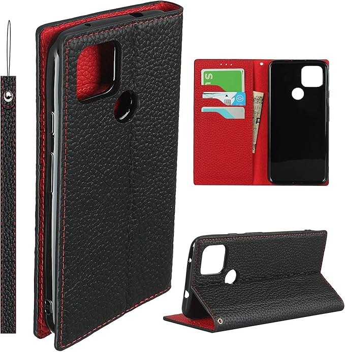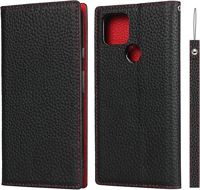 Google pixel 4a 5G ケース 【5Gモデル対応】 pixel4a 5G ケース ピクセル 4a 5G カバー グーグル pixel4a (5G) カバー SoftBank SIMフリー 全対応 ピクセル4a 5G 手帳型 case 【iCoverCase】 内蔵マグネット ベルトなし スマホケース カード入れ付き スタンド機能 本革 柔らかい 本皮 ライチ模様 スプラット同梱 ブラック