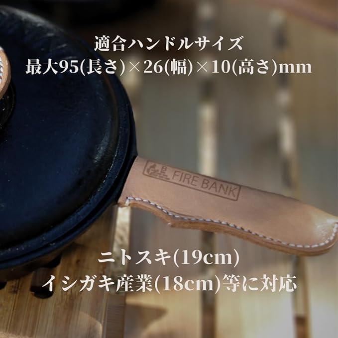 スキレットハンドルカバー レザー 手縫いイシガキ産業19㎝用 ニトスキ18cm用 耐熱 取っ手 持ち手 キャンプ BBQ
