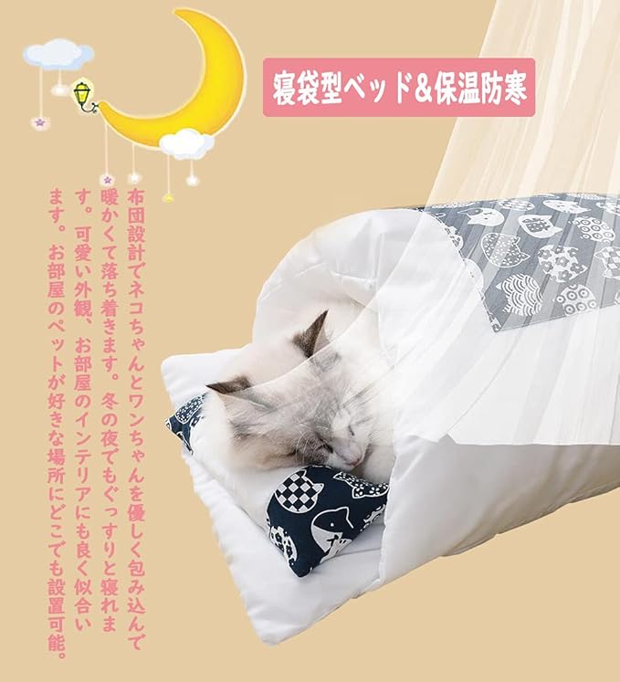 【高品質素材&柔らかい】表地:綿素材;詰め物:PP綿 。品質高い素材を採用、快適で柔らかい,異臭なく、丈夫で耐久性も優れており、万が一ペットが噛んでも無毒で被害を及ぶ心配がありません。フワフワやわらかい綿がつまった猫用の布団,ペットを風や寒さから守ります。 カバーはオールシーズン使える100%綿素材のペット用品です。