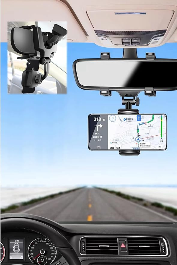 携帯ホルダー 車 【目線を落とさず安全運転でスマホを見る】 バックミラー スマホホルダー 車 スマホスタンド 車載 車 スマホスタンド 車 スマホ 車載ホルダー 車用スマホホルダー ルームミラー ス 車用ホルダー バックミラー 360度回転 [ホールド式ホルダー]