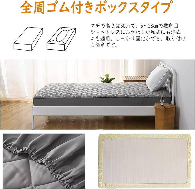 【全周ゴム付き】ズレ防止円周ゴム付き、厚さ3-28cmのベッド/マットレス/敷き布団にぴったりフィットします!しっかり固定ができ、取り付けも簡単です。