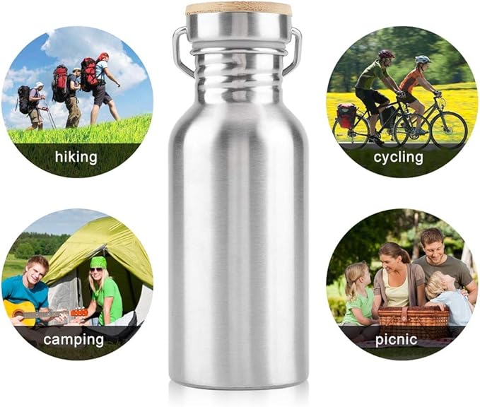 xuuyuu ステンレススチールボトル ウォーターボトル 広口 ドリンクボトル アウトドア キャンプ シルバー 350mL、500mL、750mL (500ML)