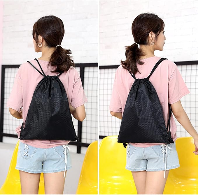 [RABUHARU] ジムサック スポーツバッグ ナップサック リュックサック 防水バッグ ケース 巾着 シューズ収納 軽量 水泳 部活 サークル 運動 旅行 キャンプ 小物防水袋1枚つきブラック