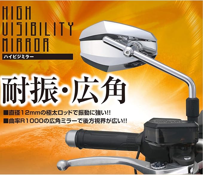 【用途】耐震性と広角視認性をそなえたバイク用ミラー
