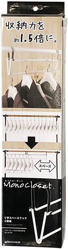 シンコハンガー(Shinkohanger) 収納効率向上 V字スペースフック2本組 ホワイト衣類 洋服 クローゼット 押入 整理 収納 省スペース 便利グッズ アイデア商品 省スペース 1.5倍 ジャケット スーツ ダウン コート 段違い収納 615058