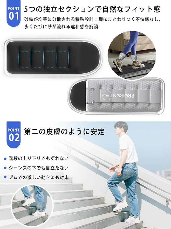 PROIRON アンクルウエイト リストウェイト パワーアンクル 0.5kg 1kg 1.5kg 2kg 超快適 装着感 2個セット 足首 トレ 運動不足解消