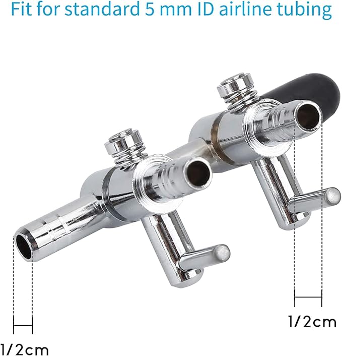【エアチューブ 2又分岐】2つの制御されたレバーを備えた空気制御弁は完璧に空気を分配し制御します。流量調整弁を装備したステンレス水槽用エアーポンプ付属品で空気ポンプなど、あらゆる機器の空気供給能力を高めるのに最適です。酸素を増やし、新鮮な空気を保ち、魚の健康的な環境をつくります。素材:ケルメッキ技術表面、サビつけにくくステンレス鋼。タイプ:5ウェイ。サイズ:5cm*2.8cm カラー: シルバートーン、ブラック