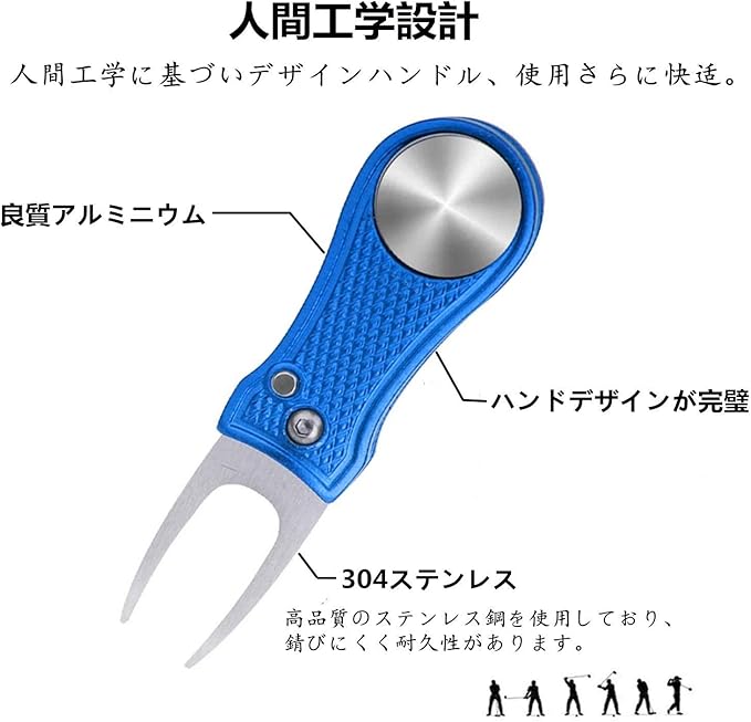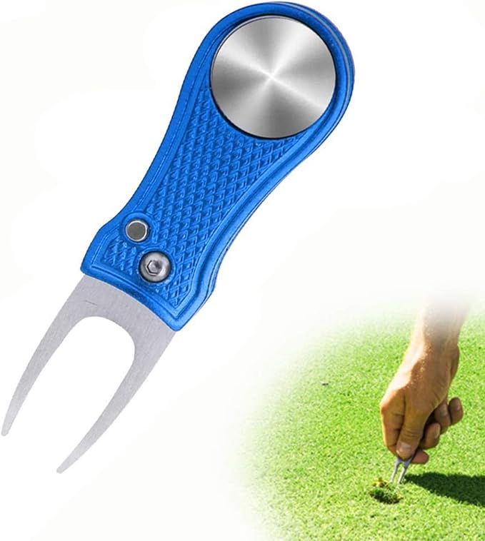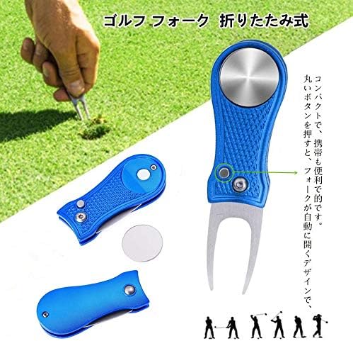 YFFSFDC ゴルフフォーク 折りたたみ式 ゴルフ フォーク 修理 フォーク 持ち運び便利 亜鉛合金 ゴルフ 用品 アクセサリー 贈り物 1個入り (ブルー 丸柄フォーク)